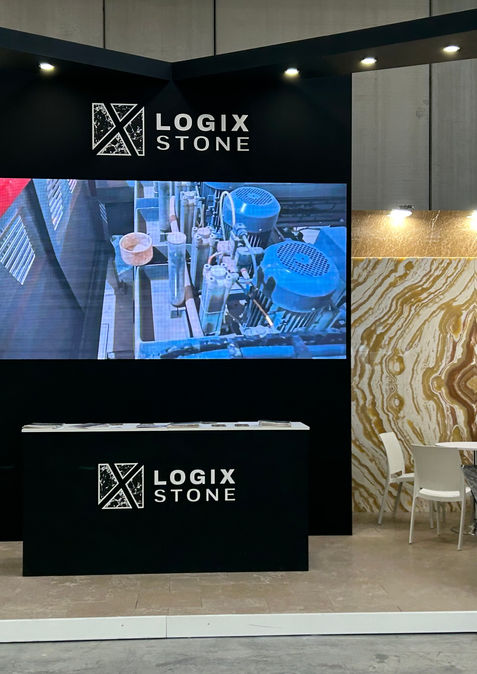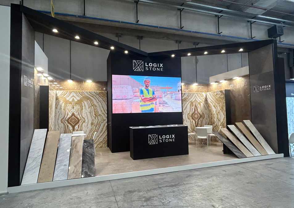 Lo stand realizzato per Logix Stone a Marmomac 2024 è l’espressione di una filosofia che unisce tecnologia avanzata e rispetto per la materia naturale. Ogni elemento dell’allestimento valorizza le superfici in pietra con un design essenziale e contemporaneo, che mette al centro l’innovazione e la qualità dei prodotti.